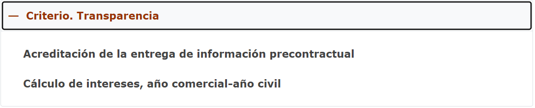 Este resultado indica el nombre del criterio que resultaría aplicable a la selección. Si se pincha sobre él, aparecerá una pantalla emergente donde se mostrará el texto completo del criterio, tal como se muestra a continuación: