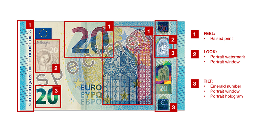 Like the first series, the Europa series banknotes show architectural styles from different periods in European history, but their design has been slightly modified. These are the main changes: