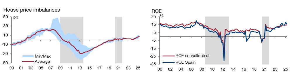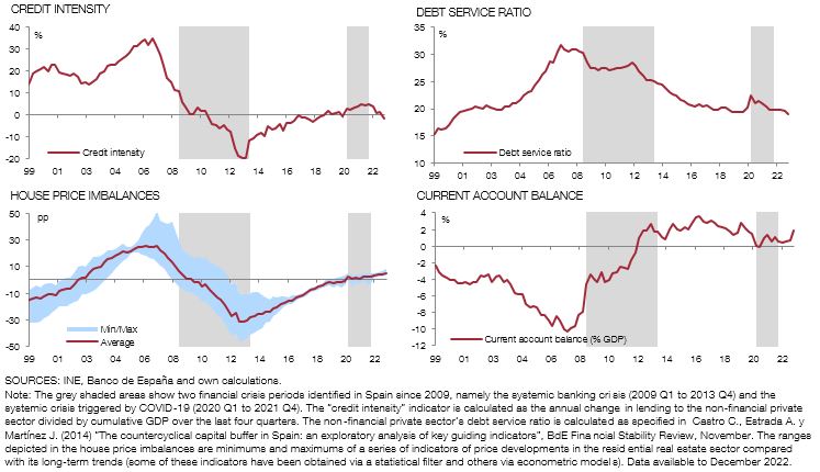 Other complementary indicators include, for example, credit intensity, price gaps in the real estate sector and other measures of house price imbalances, the non-financial private sector’s debt service and ROE both at consolidated level and for business in Spain.