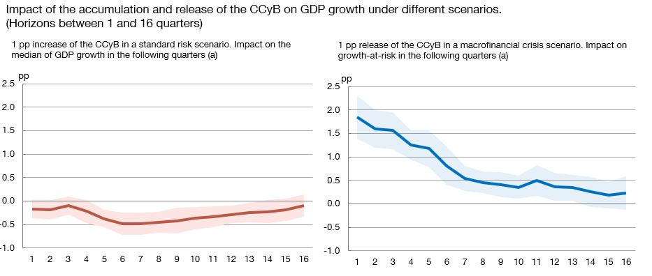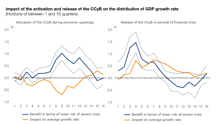 Activation of the CCyB during standard cyclical risk phases incurs very limited costs in terms of loss of credit and GDP growth. Conversely, the release of the CCyB during periods of macro-financial crisis results in substantial benefits in the form of less severe contractions in these variables.
