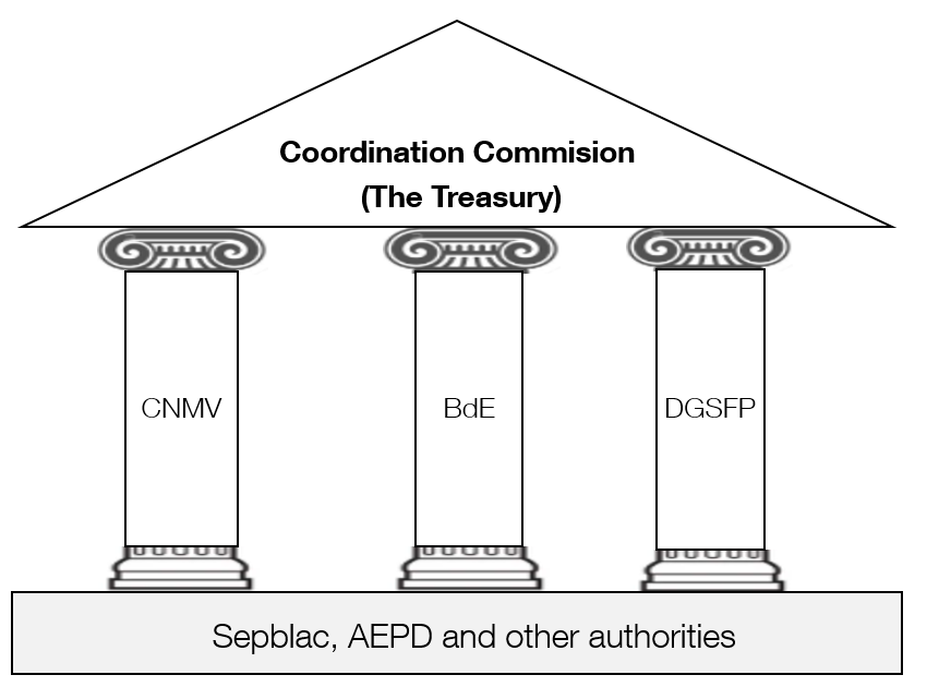 The Commission is composed of representatives of the supervisory authorities (Banco de España-BdE-, the National Securities Market Commission-CNMV- and the Directorate General for Insurance and Pension Funds-DGSFP) and of other authorities such as the Executive Service of the Commission for the Prevention of Money Laundering and Monetary Offences (Sepblac) or the Spanish Data Protection Agency (AEPD).