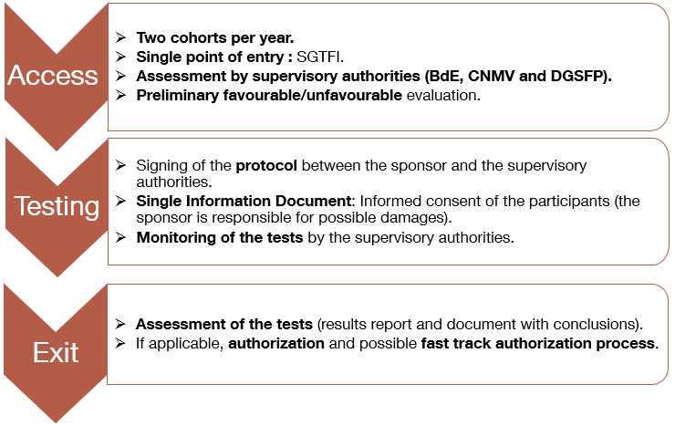 The sandbox allows testing, with all the necessary guarantees and under the supervision of the supervisory authority, technology-based financial innovations, provided that they comply, in the opinion of the supervisory authority, with the access requirements set out in Law 7/2020.