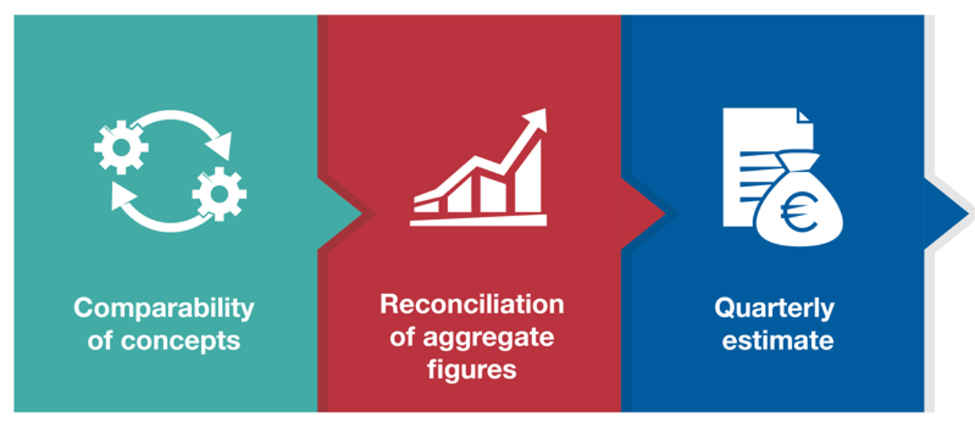 - Comparability. First, equivalences are established between the concepts of wealth and debt used in the national accounts and those used in the household survey (HFCS), wherever the respective definitions match. Some national accounts data series are adjusted to obtain household-level metrics, estimate the value of built-up land and exclude houses abroad.