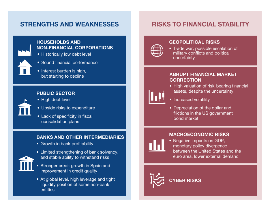 Every six months, the Financial Stability Report sets out to identify the vulnerabilities and risks that could affect the stability of the Spanish financial system