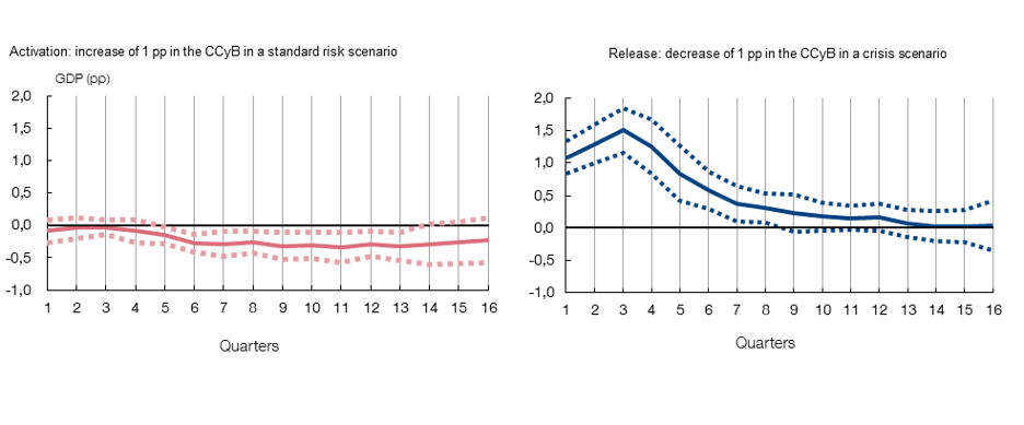 In conclusion, the changes in the operative framework to improve the effectiveness of the CCyB will strengthen bank solvency while having a very minor economic impact. Meanwhile, the estimated benefits of releasing the buffer in the event of a crisis will be far greater, thus making the Spanish economy more stable.
