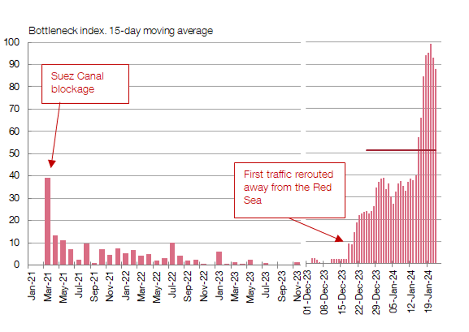 What does the Banco de España’s bottleneck index tell us about the economic impact of the tensions in the Red Sea?
