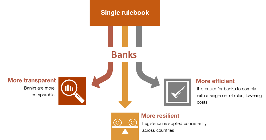 The single rulebook includes capital, liquidity and governance requirements for banks, depositor protection and the regulation to prevent and manage bank failures. These rules are applied consistently across the euro area and help make banks more transparent, resilient and efficient (see Figure 2).