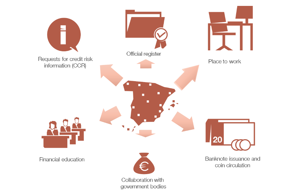 Today, the Banco de España branches work with credit institutions and provide various services to the public (see Figure 2).