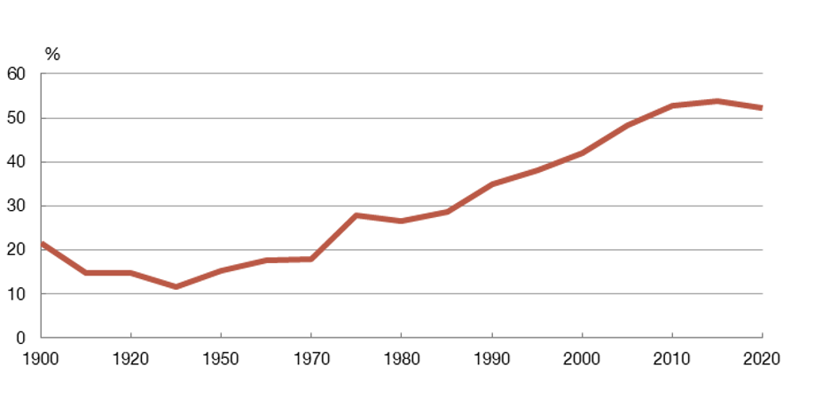 WOMEN’S LABOUR MARKET PARTICIPATION RATE IN SPAIN, 1900-2020