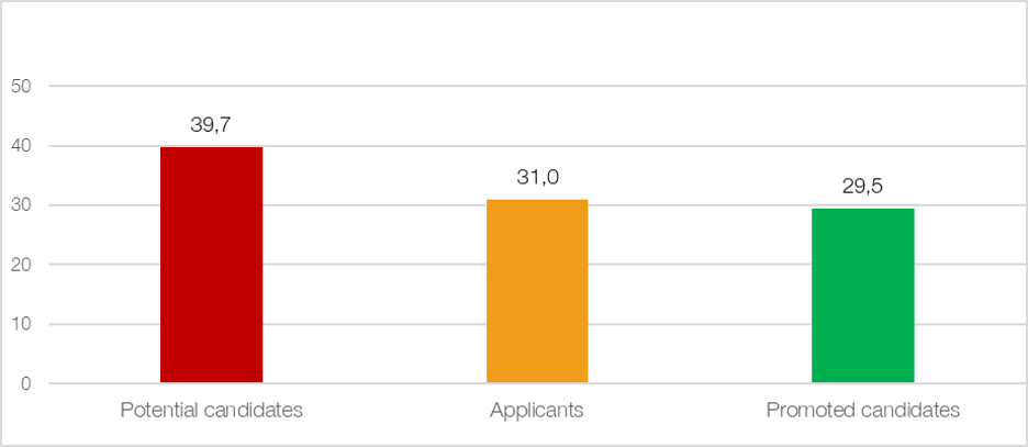 – which is made available to the public, in a transparency exercise – found that, on average, there was no significant gender gap in the probability of promotion. The percentage of women who are promoted is not substantially different from the percentage of potential female candidates.