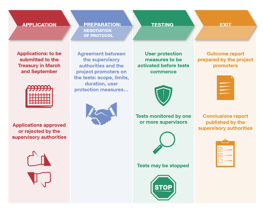 A sandbox makes it possible to test technological innovations applicable to the financial system. To this end, a plan agreed with one or several competent authorities is followed in a controlled environment where risks have been minimised.