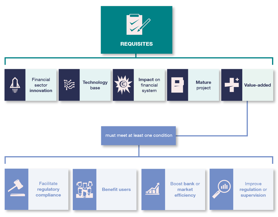 To be eligible for the regulatory sandbox, they must be technology-based innovation projects applicable to the financial system and must be sufficiently advanced to be suitable for testing. They must also offer potential utility or value-added compared with existing solutions in the areas listed in Figure 3.