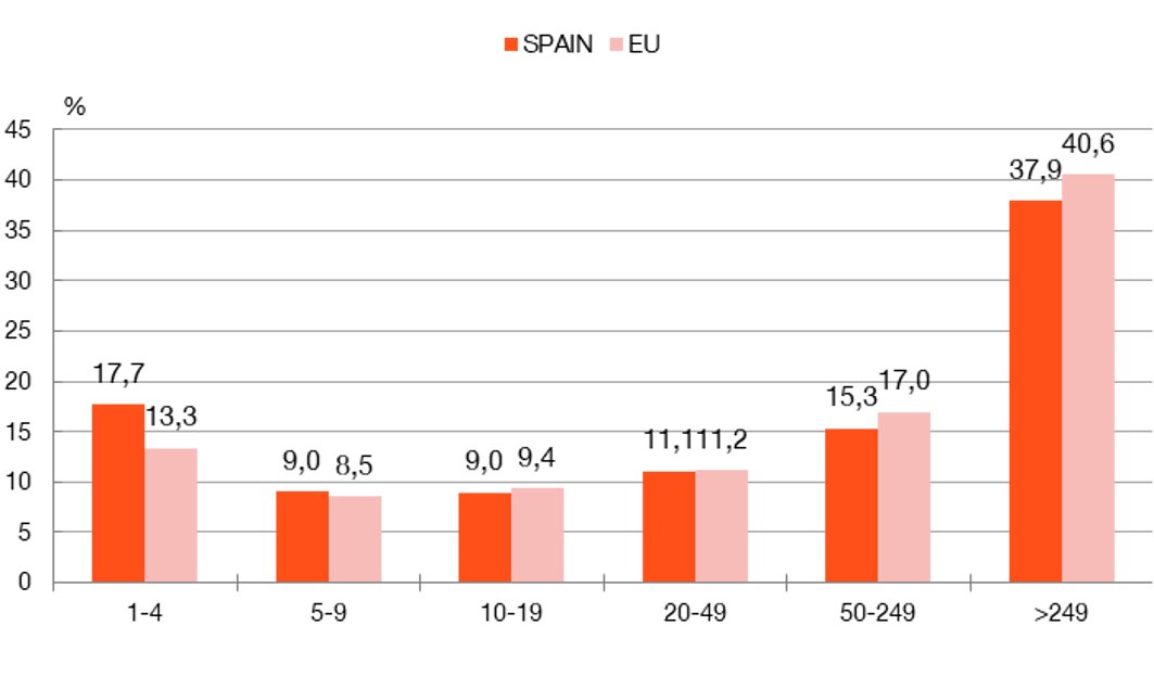 LARGER SHARE OF SMALL FIRMS IN EMPLOYMENT IN SPAIN THAN IN THE EUROPEAN UNION