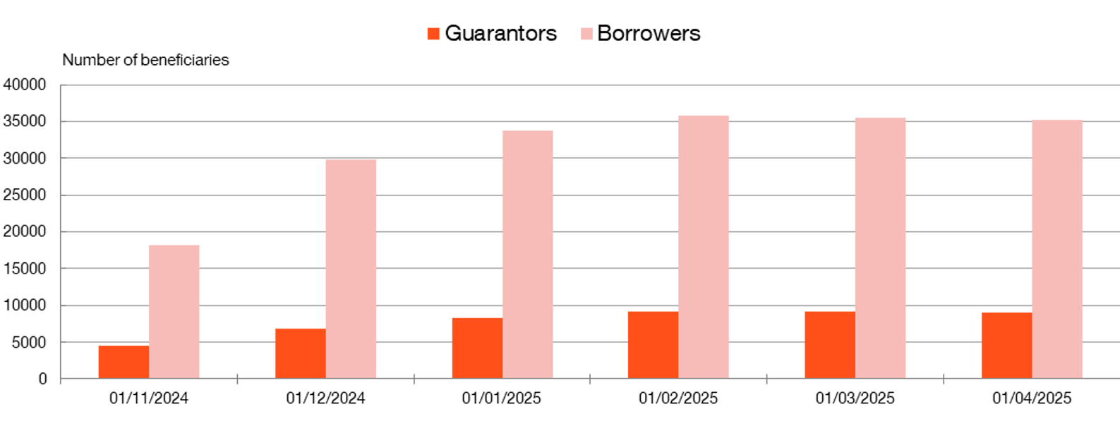 - By analysing the use of the measures introduced, we can verify agents’ real needs for financial support. Chart 2 shows the number of beneficiaries that have made use of the loan moratoria.