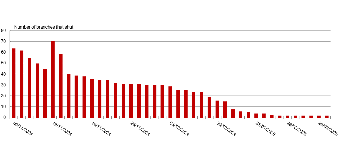 - Close monitoring of the banks with the greatest exposures in the area affected. Chart 3 shows the number of branches that had to shut in the area affected.