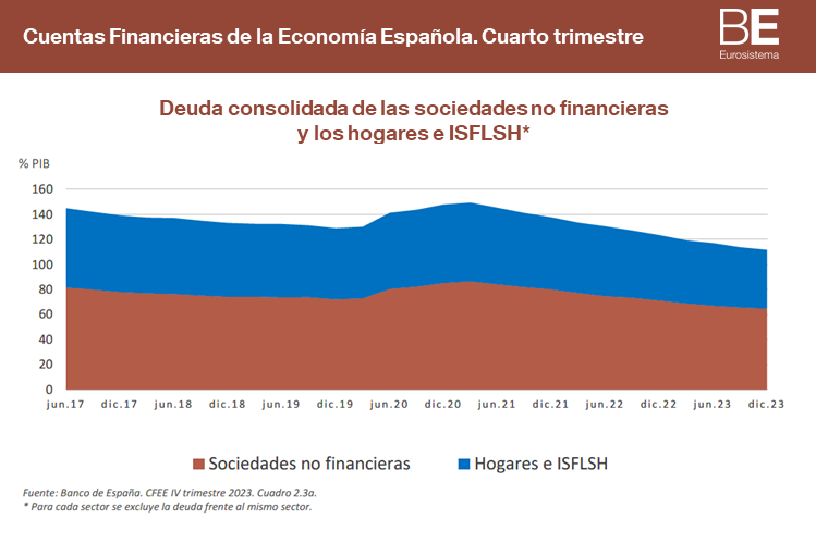 La deuda de empresas y hogares se redujo hasta el 111,6% del PIB en 2023