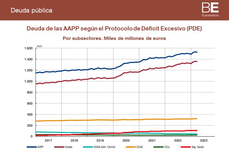 La deuda de las Administraciones Públicas ascendió a 1.526 mm de euros en abril de 2023