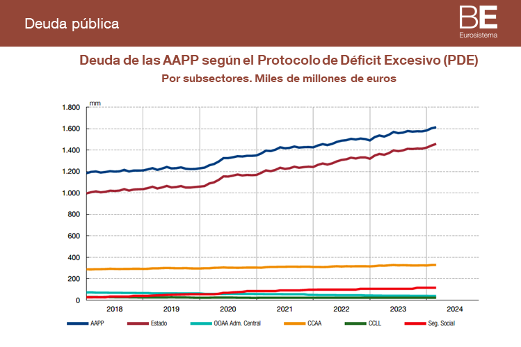 La deuda de las Administraciones Públicas ascendió a 1.613 miles de millones de euros en marzo de 2024