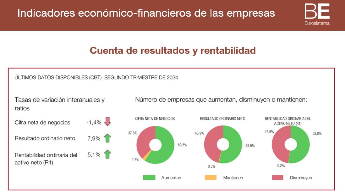 Este incremento del resultado, de menor intensidad que el registrado en el primer semestre de 2023 (11,5%), se produjo en un contexto de crecimiento de la actividad (medida por el Valor Añadido Bruto (VAB) del 5,3% también por debajo del registrado en el primer semestre de 2023 (11,1%).