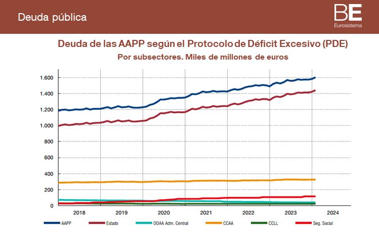 La deuda de las Administraciones Públicas ascendió a 1.603 mm de euros en febrero de 2024 (249 KB)