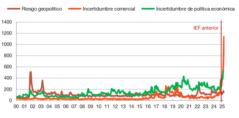 . Última observación: abril de 2025 (riesgo geopolítico y de incertidumbre comercial) y marzo de 2025 (incertidumbre de política económica).