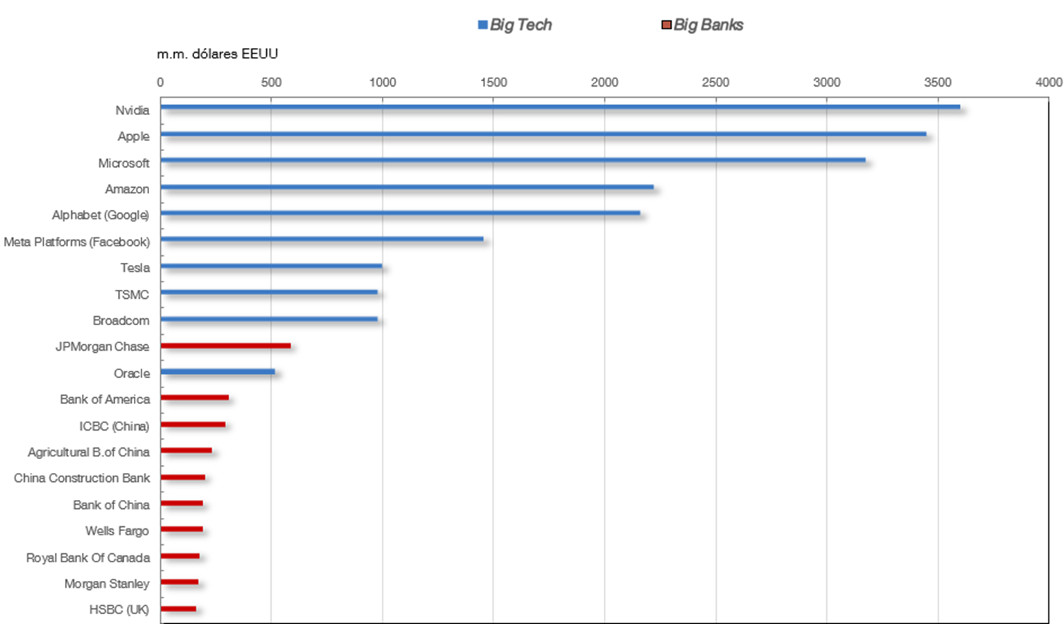 CAPITALIZACIÓN BURSÁTIL (2024): BIG TECH FRENTE A «BANCOS GRANDES» (BIG BANKS)