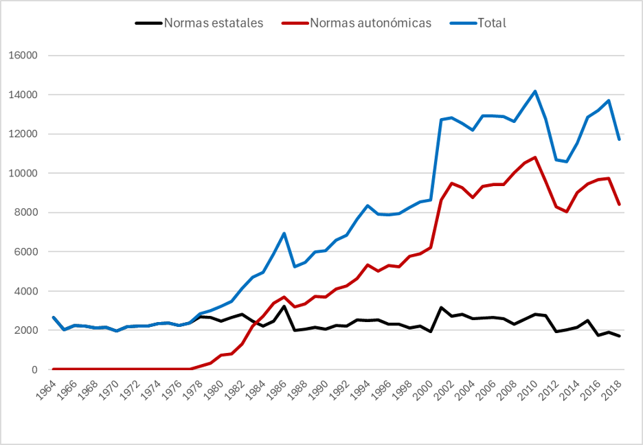 EL NÚMERO DE NORMAS APROBADAS POR AÑO SE HA DISPARADO EN LAS ÚLTIMAS DÉCADAS EN ESPAÑA