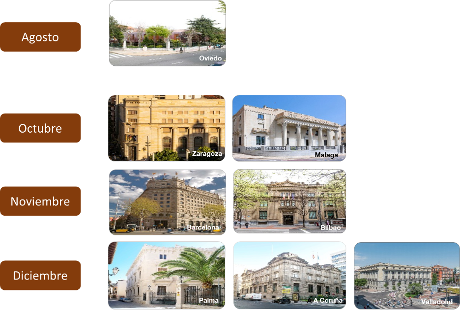 En definitiva, hay motivos para celebrar los 150 años de ocho de nuestras sedes. Las sucursales no solo forman parte de la historia del Banco de España; también se adaptan y se proyectan en el futuro con la institución, poniendo énfasis en los valores estratégicos de transparencia, independencia, servicio público y excelencia.