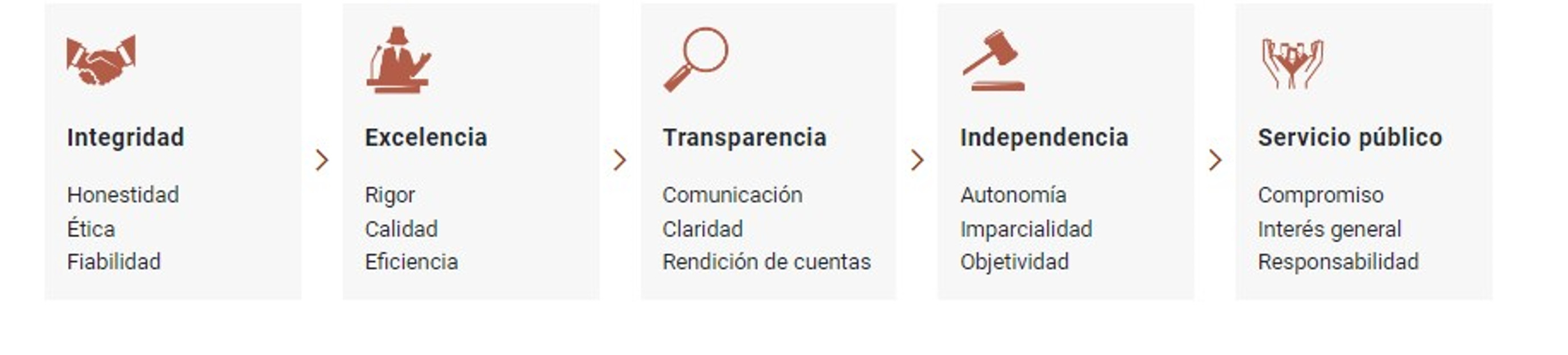 El Banco de España es una institución sólida. Esta solidez se fundamenta en unos arraigados valores institucionales (recogidos en el esquema 1) y en una plantilla con alta competencia profesional y dedicación al servicio público. De entre los valores, me gustaría mencionar dos pilares principales: el rigor analítico y la independencia.
