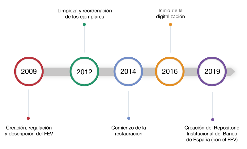 (FEV) y reúne cerca de 17.500 obras de temática diversa desde el siglo XIV al XX. Quedan fuera del FEV los documentos del «Archivo histórico» del Banco de España