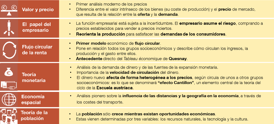 son deudores de Cantillon, aunque en muchos casos no se le reconoció. Cantillon fue rehabilitado por Jevons a finales del siglo XIX