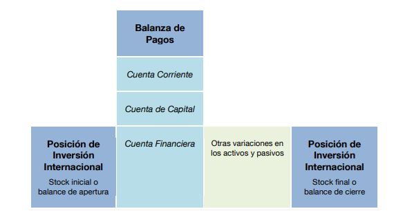 La Balanza de Pagos (BP) junto con la Posición de Inversión Internacional (PII) conforman las cuentas internacionales. Estas cuentas ofrecen un marco integrado para el análisis de las relaciones económicas de, generalmente, un país frente al resto del mundo. Este marco presenta una secuencia de cuentas que se resume en el gráfico siguiente.