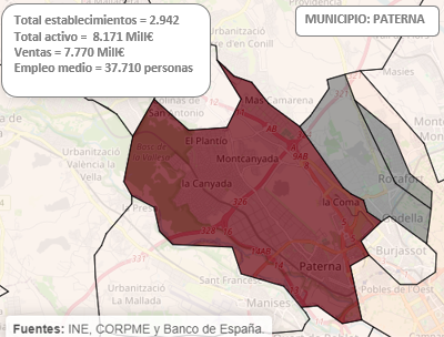 Utilizando los datos ofrecidos por la herramienta ViME, podemos hacer un cálculo del impacto mucho más ajustado a la realidad: Las 2.022 empresas que tienen su domicilio social en ese municipio registraron unas ventas de 6.600 millones de euros en 2023, mientras que las ventas del total de establecimientos radicados en Paterna, (que fueron 2.942, incluidos los registrados en otras localidades) ascenderían a 7.700 millones de euros, lo que supone un 17% más.